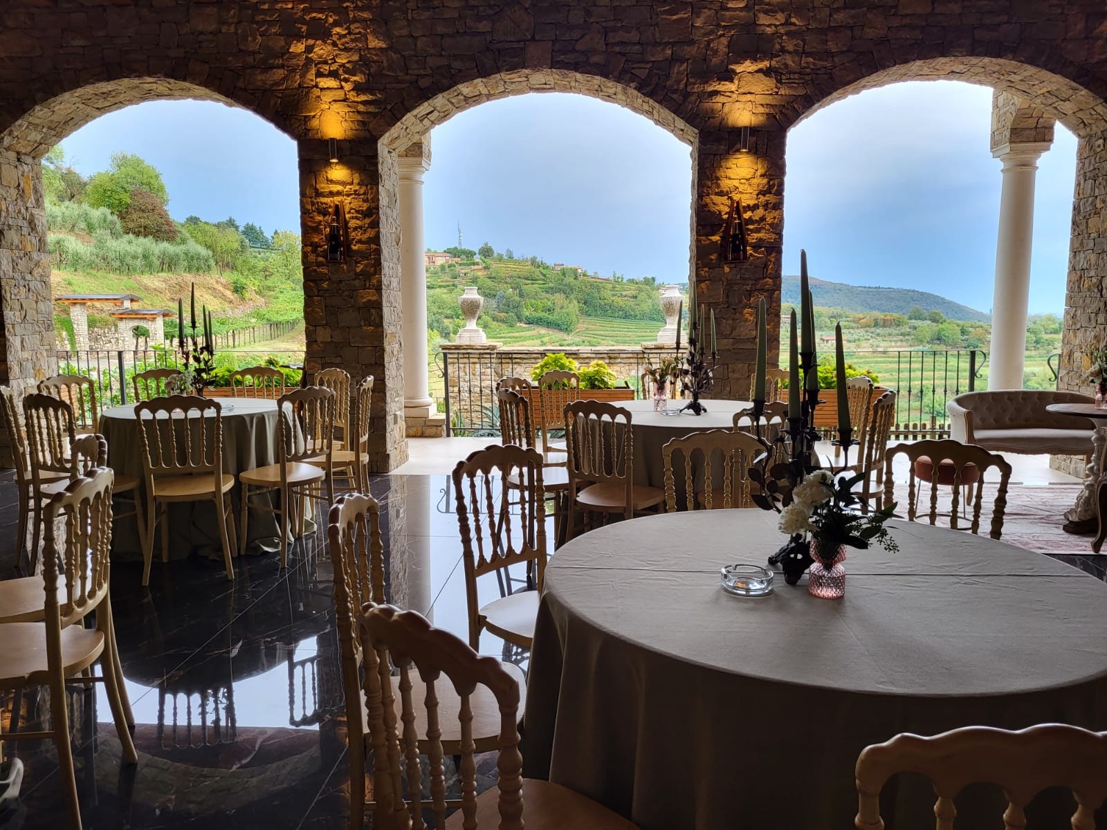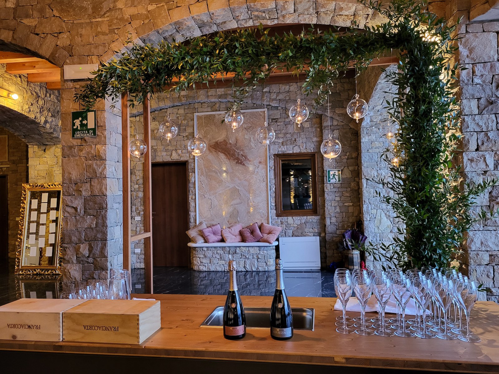 Il nostro giardino, che domina il territorio di produzione del Franciacorta, è un luogo suggestivo dove, durante il rito civile o il taglio torta, si può godere di tramonti da favola o, in tarda serata, di una magica vista notturna.