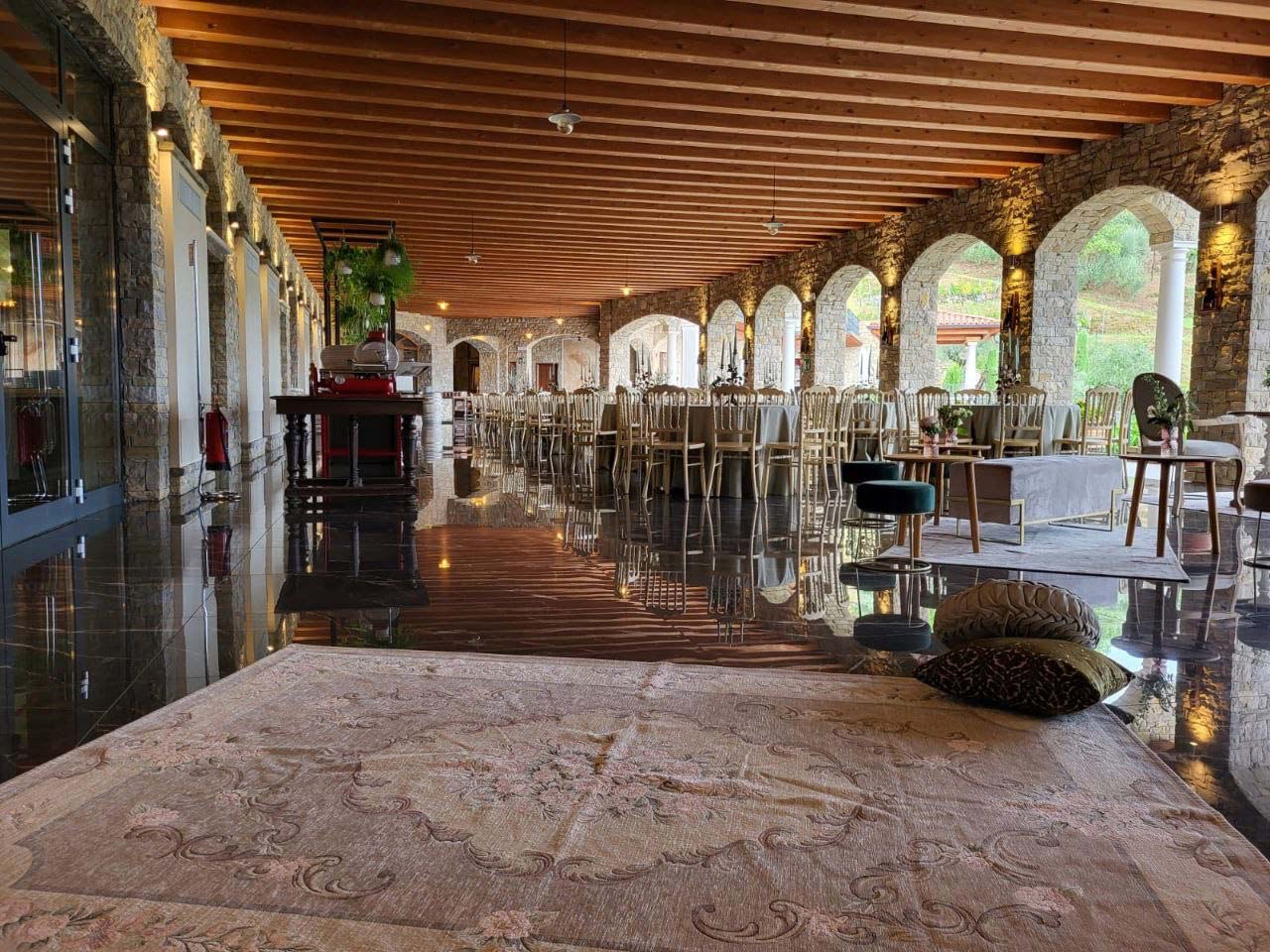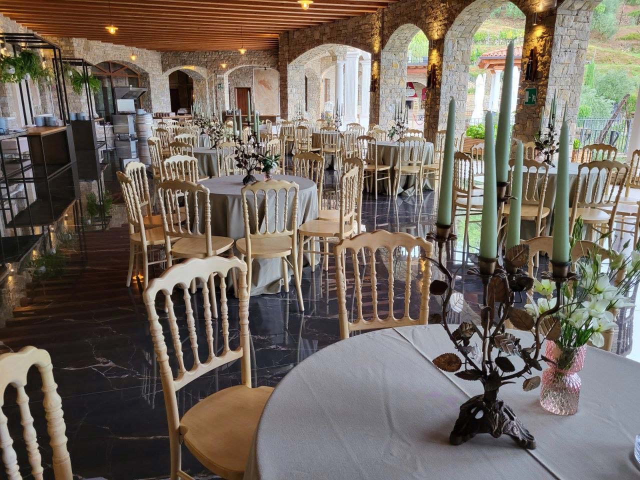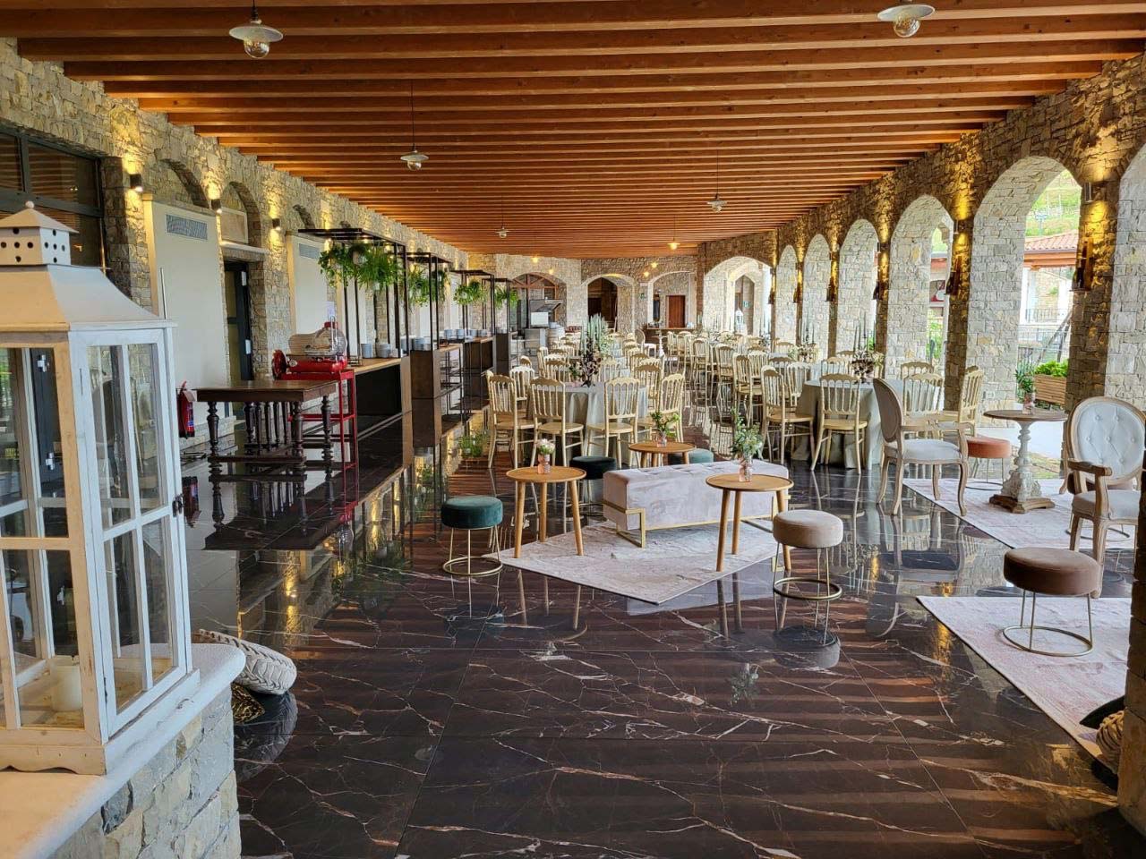 Our terrace, which is covered by suggestive wooden beams and suspended arches, is a large area where you can enjoy the moment of the aperitif or celebrate the end of your special day with the buffet of desserts.