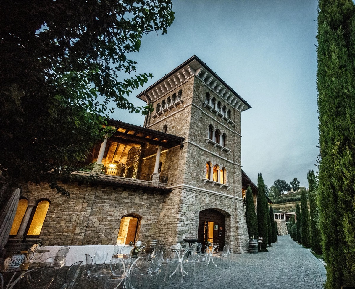 The Main Tower, with a view on our vineyards, overlooks the long tree-lined boulevard with cypresses and olive trees. This is the perfect place where you can enjoy a romantic outdoor dinner with a view on the valley of vineyards, and immerge yourself in our culture and tradition.